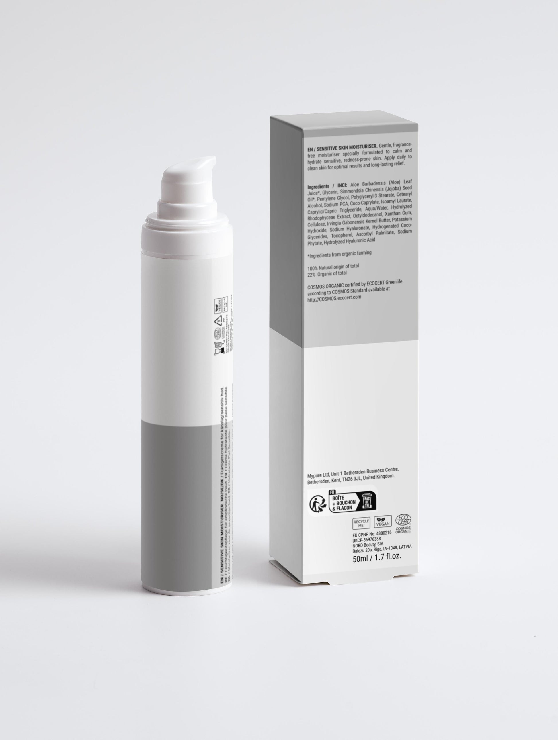 Sensitive Skin Moisturiser is a gentle, fragrance-free face cream specifically designed for delicate, easily irritated, and redness-prone skin. Lightweight yet deeply hydrating, it calms sensitivity, strengthens the skin barrier, and restores comfort—all while leaving no greasy residue. An ideal daily moisturizer for those seeking calm, balance, and lasting hydration.